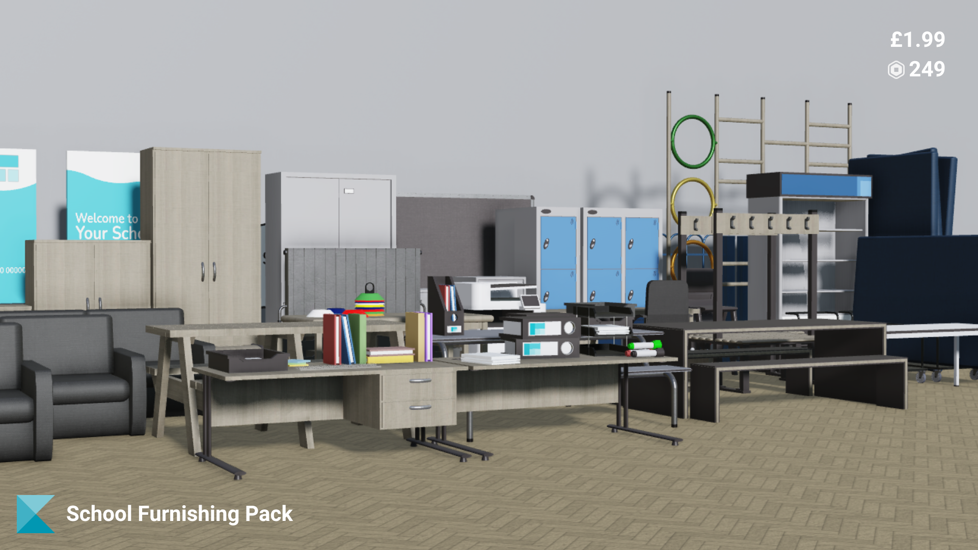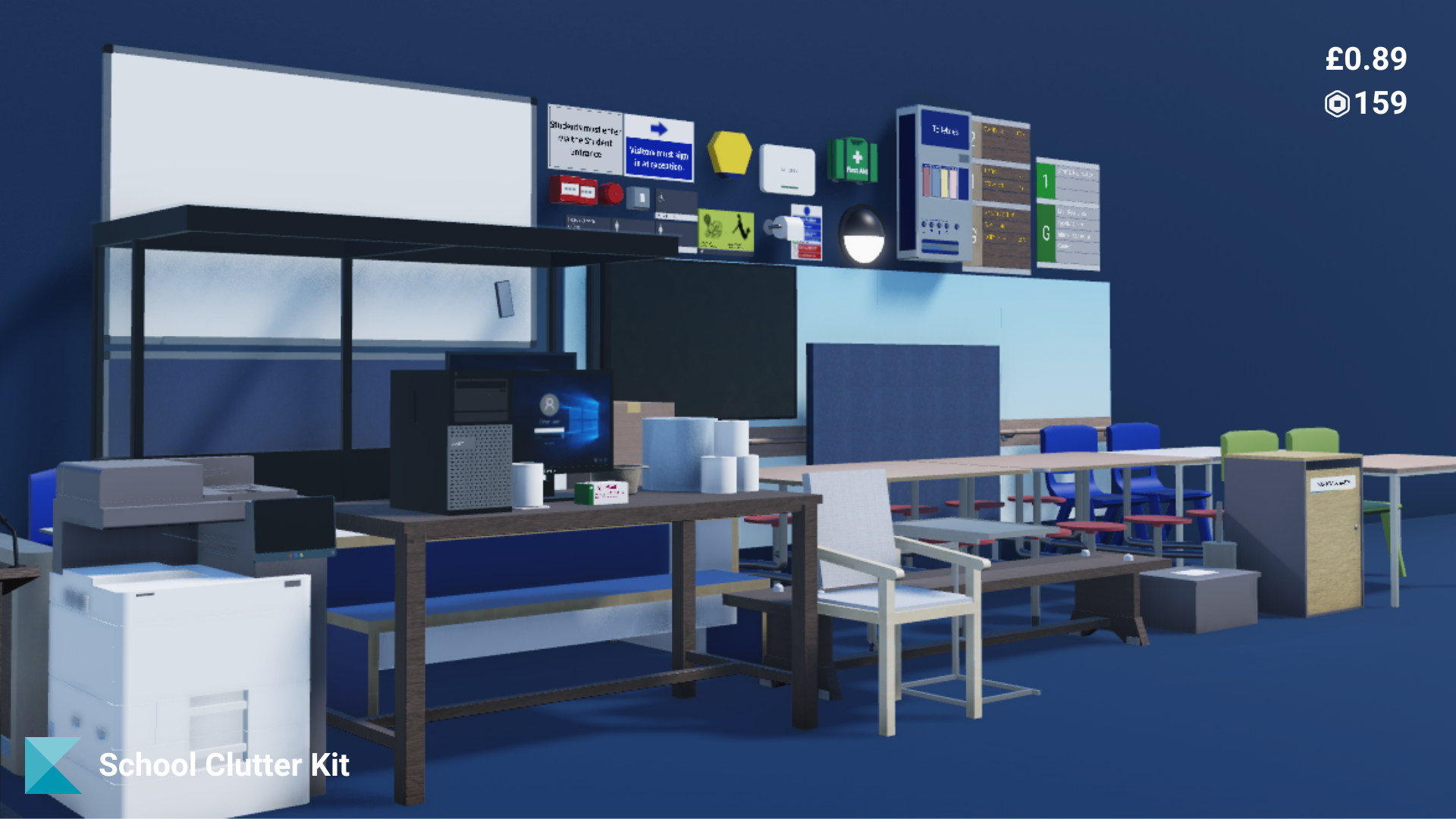 This pack contains more than 60 assets that are perfect for fully kitting out your schools.